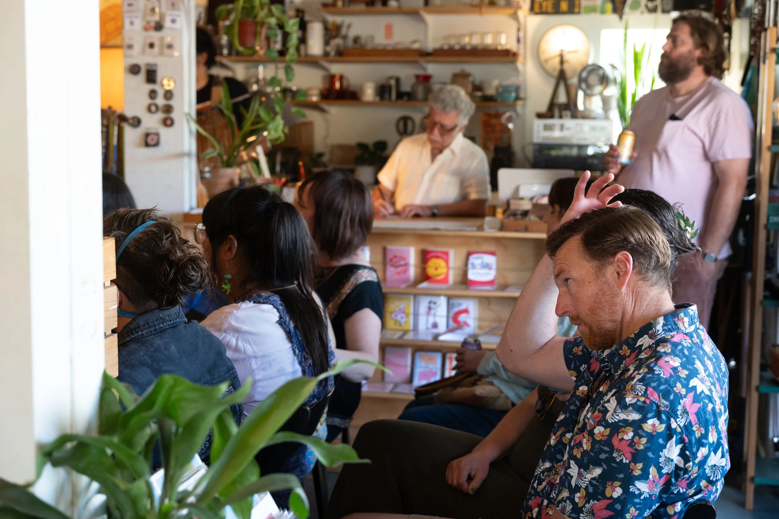 A friend of mine (Joey) had posted online about an event he’d scheduled called “A Return To Tender” where he and three other middle-aged men talked about kindness and tenderness and just trying to be better dudes to themselves and the people in their lives. The event was at A Satellite of Love, a local thrift/art/plant/kitsch store literally blocks from my apartment. Something about the event called to me, so I grabbed my camera and made my way there. I’d made a decision not to drink as I’d recognized that I’d been drinking at social events as a way to curb my anxiety, so of course most of the night I felt aggressively uncomfortable—outside of Joey, I didn’t know anyone there, so I just had to stare at things and fiddle with my camera because I don’t know how to talk to strangers. But even with that awkwardness, it was an amazing event where people spoke openly and vulnerably about living through the horrors of our current social zeitgeist. Days later, a poetry reading at the same spot, so I knew I had to pop by for a few photos and to listen to indigenous poets read through their work—a sentence I never thought I’d type.